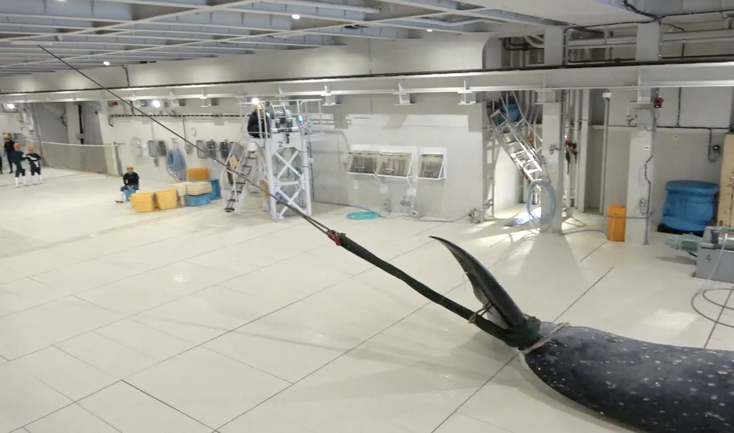 さらに、クジラを船上へ揚げる際に使用するスリップウェイ(揚鯨台)は、従来の35度から18度へと傾斜を緩和した改良型を採用。これにより、大型クジラの揚げ上げ作業がより安定し、荒天時でも安全な搬入が可能になりました。