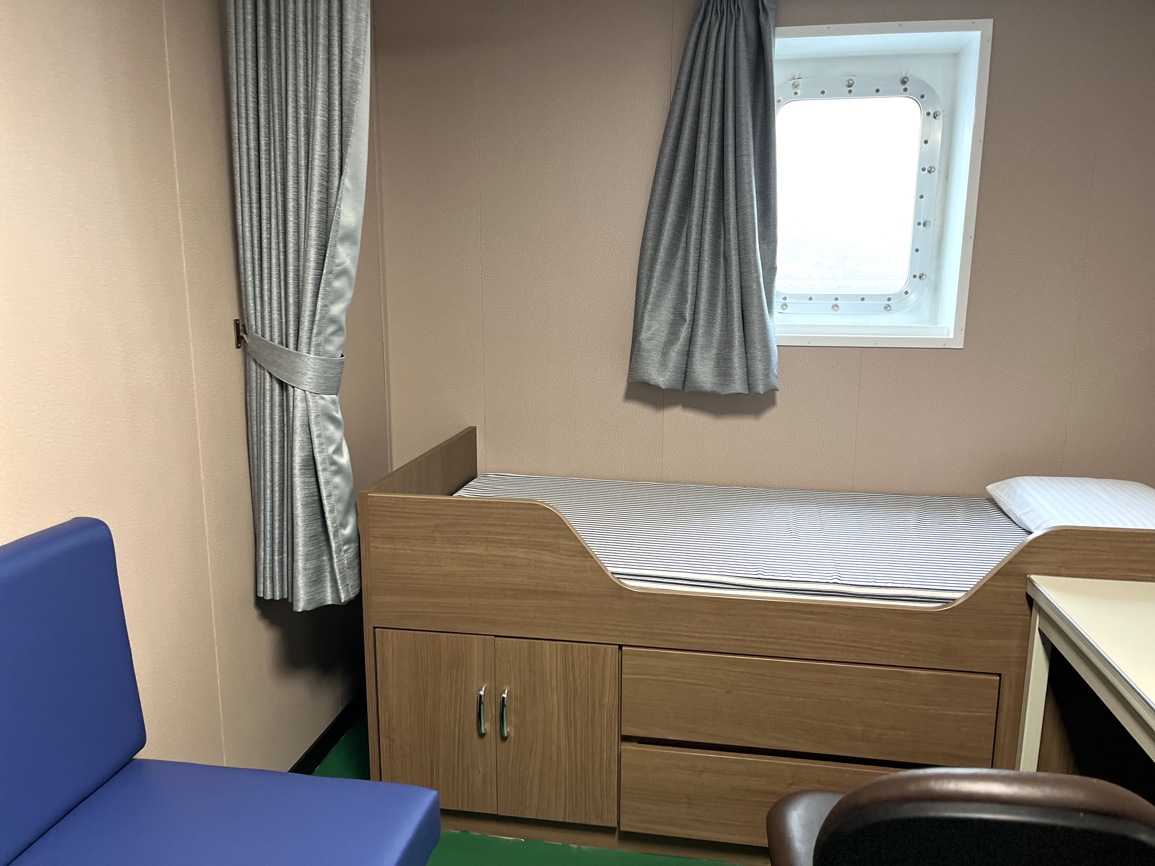 また、居住エリアは従来の相部屋型から全室個室化を実現。長期航海でもプライバシーと休息を確保できるよう、ベッド・デスク・収納・Wi-Fi設備などを完備しました。食堂やリクリエーションルームも整備され、働く人に優しい環境づくりが徹底されています。